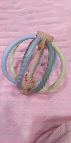 The combination of wood and silicone materials offers a rich sensory experience. Your baby will love the feel, sound, and look of this rattle, keeping them engaged and curious. This promotes cognitive development and tactile exploration.